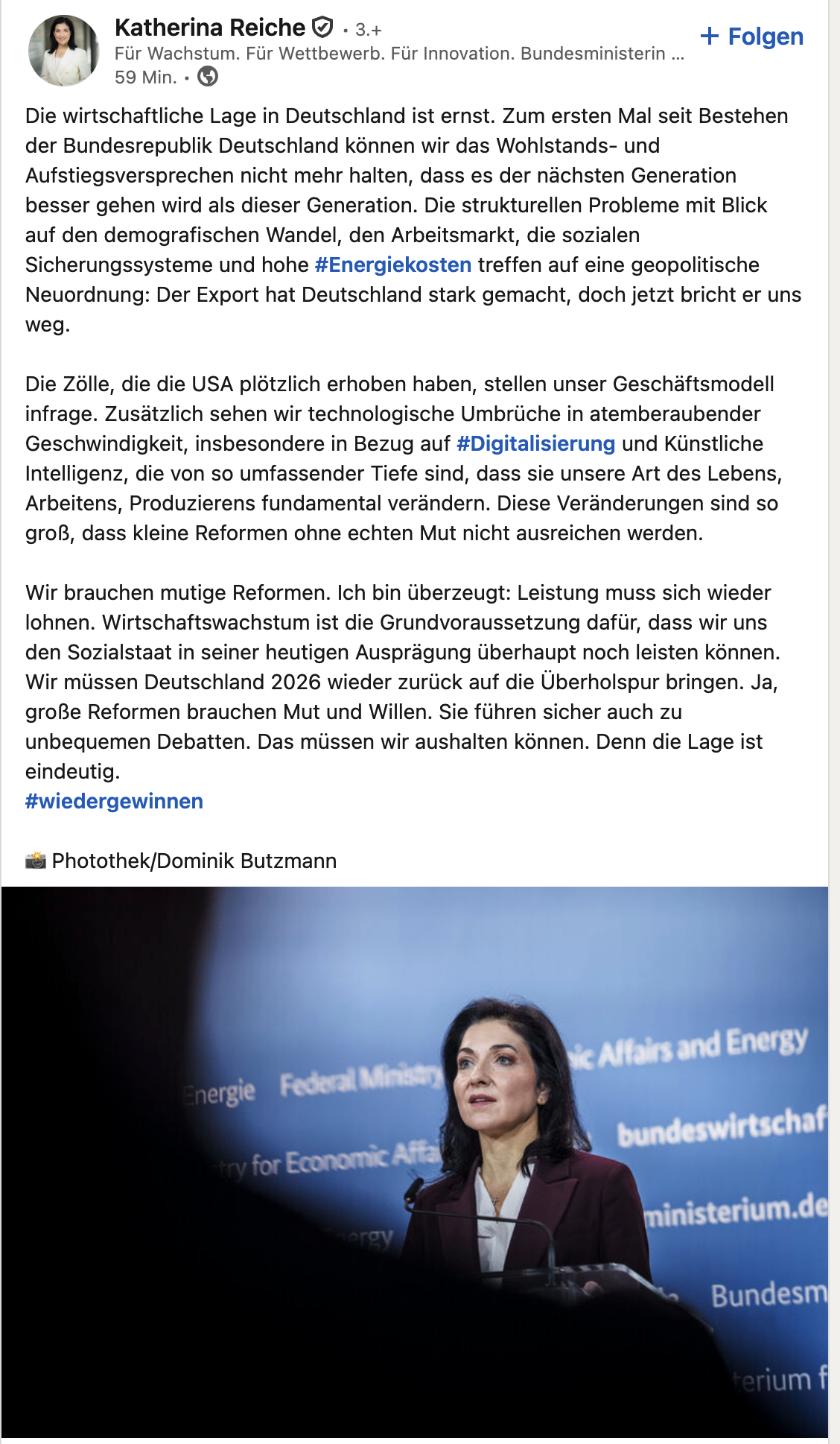 Natürlich kann eine Wirtschaftsministerin nicht allein reformieren. Gesetze brauchen Koalitionen, Mehrheiten, parlamentarische Verfahren. Doch Agenda-Setting, Priorisierung und Vorlage konkreter Maßnahmen sind originäre Aufgaben eines Ministeriums. Wer Reformbedarf erkennt, muss ihn operationalisieren: in Gesetzentwürfen, Zeitplänen und politischen Konflikten. Reformen entstehen nicht durch Appelle, sondern durch Entscheidungen – oft unbequeme, fast immer streitige.
